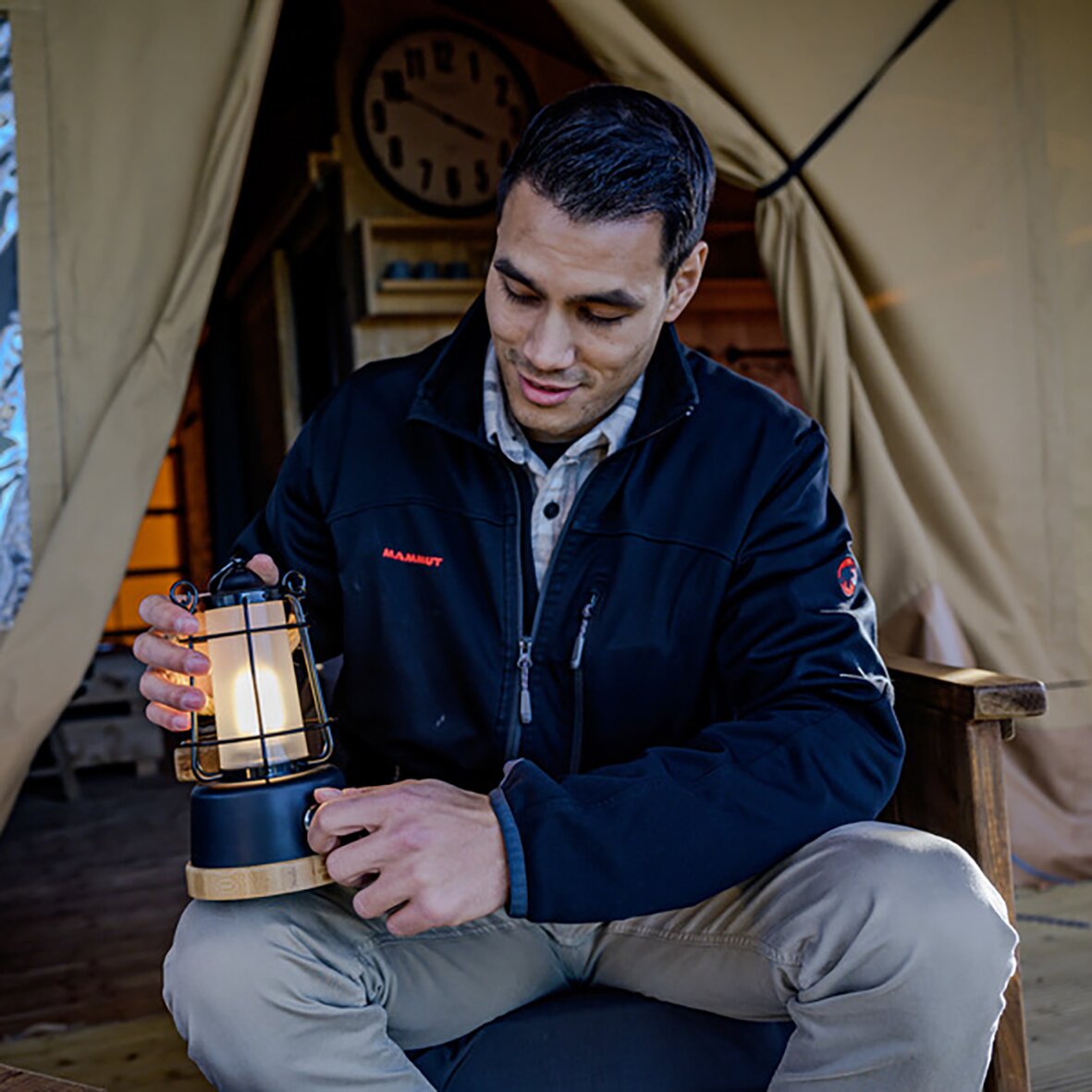 Die Akku-Campinglampe (10 – 350 lm) mit einstellbarer Lichtfarbe (2700 – 6500 K, warmweiß/kaltweiß) ist stufenlos dimmbar und dank Schutzart IP44 ideal für den Außenbereich. Sie leuchtet bis zu 75 h und ist über das mitgelieferte Micro-USB-Kabel wiederaufladbar. Die integrierte Powerbank sorgt dafür, dass USB-fähige Geräte bequem aufgeladen werden können. Das Hanfseil und der Bambussockel sind aus nachwachsenden Werkstoffen gefertigt. Inklusive Akku: 3,7 V mit 5200 mAh.