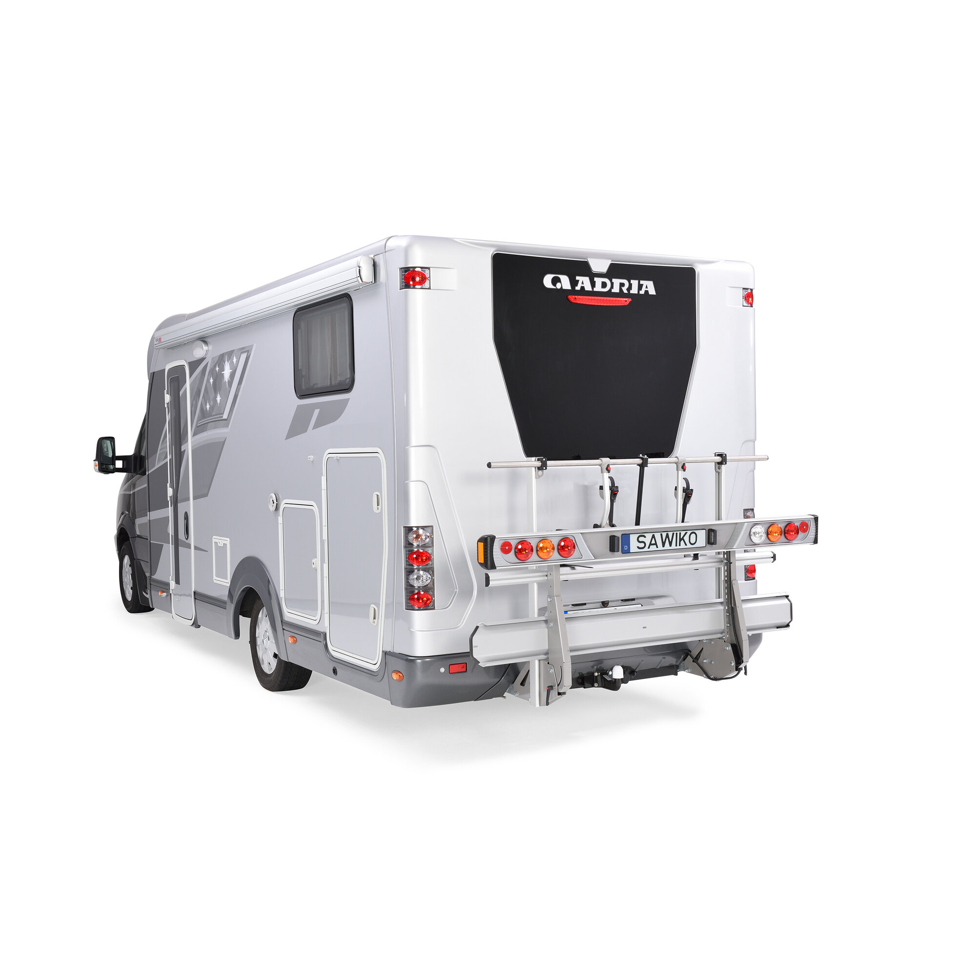 Der Vario wird größtenteils aus Aluminium gefertigt. Er besteht aus qualitativ hochwertigen Komponenten wie z. B. den auf E-Bikes abgestimmten Fahrradschienen und Haltearmen oder dem Querholm aus Edelstahl. Sollte der Vario einmal nicht benötigt werden, kann er mit wenigen Handgriffen hochgeklappt werden und so platzsparend am Fahrzeug bleiben. Aber auch die Demontage ist ohne zusätzliches Werkzeug möglich. Seine variable Beladetiefe kann bei Bedarf von 62 auf 80 cm verlängert werden. Aufpreis für eine zusätzlich erforderliche Rahmenverlängerung für Fahrzeuge ohne oder mit nicht tragfähiger Rahmenverlängerung ab 378,00.