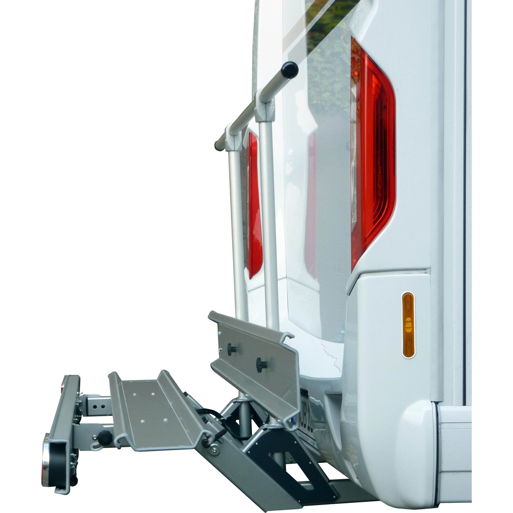 Der Lastenträger XtraFold ist so robust konstruiert, dass er Roller und kleinere Motorräder bis zu 150 kg tragen darf und zudem hochklappbar ist.