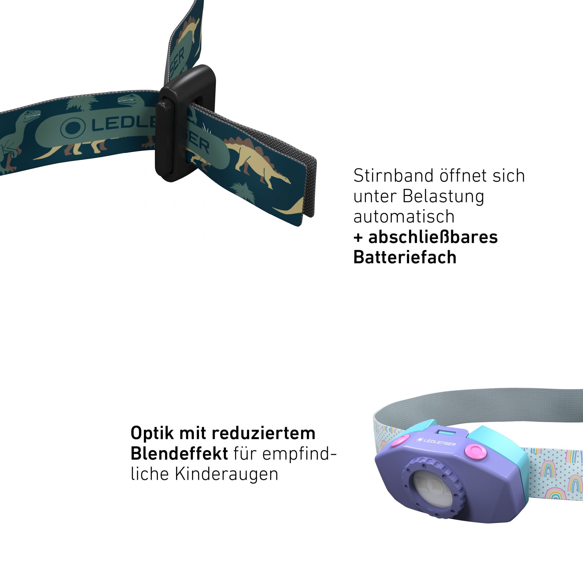 Kinder entdecken die Welt am liebsten mit ihren eigenen Augen – und ab sofort auch mit ihrem eigenen Licht. Mit der Ledlenser Kidled2 können sie auf Expedition im Dunkeln gehen. Ob zum Lesen, auf Nachtwanderungen, als buntes Signallicht oder Lichtspielzeug: Diese vielseitige, batteriebetriebene Stirnlampe überzeugt mit zahlreichen kinderspezifischen Funktionen und Details.