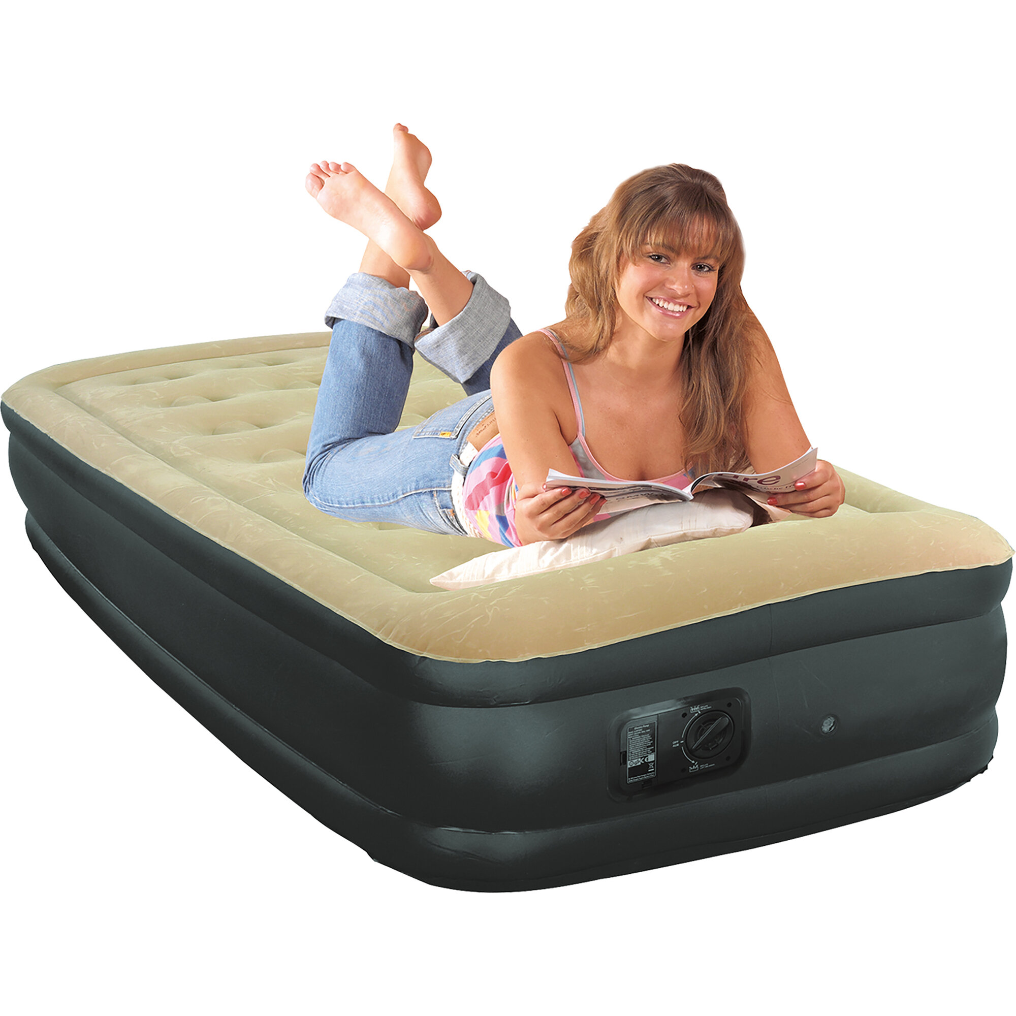 Das extra hohe Luftbett, gefertigt aus strapazierfähigem und gleichzeitig sehr leichtem PVC, sorgt zusammen mit der beflockten Oberfläche für einen hohen Schlafkomfort. Mit integrierter 230-Volt-Elektropumpe und Kabelfach. Maße L 196 x B 97 x H 47 cm.