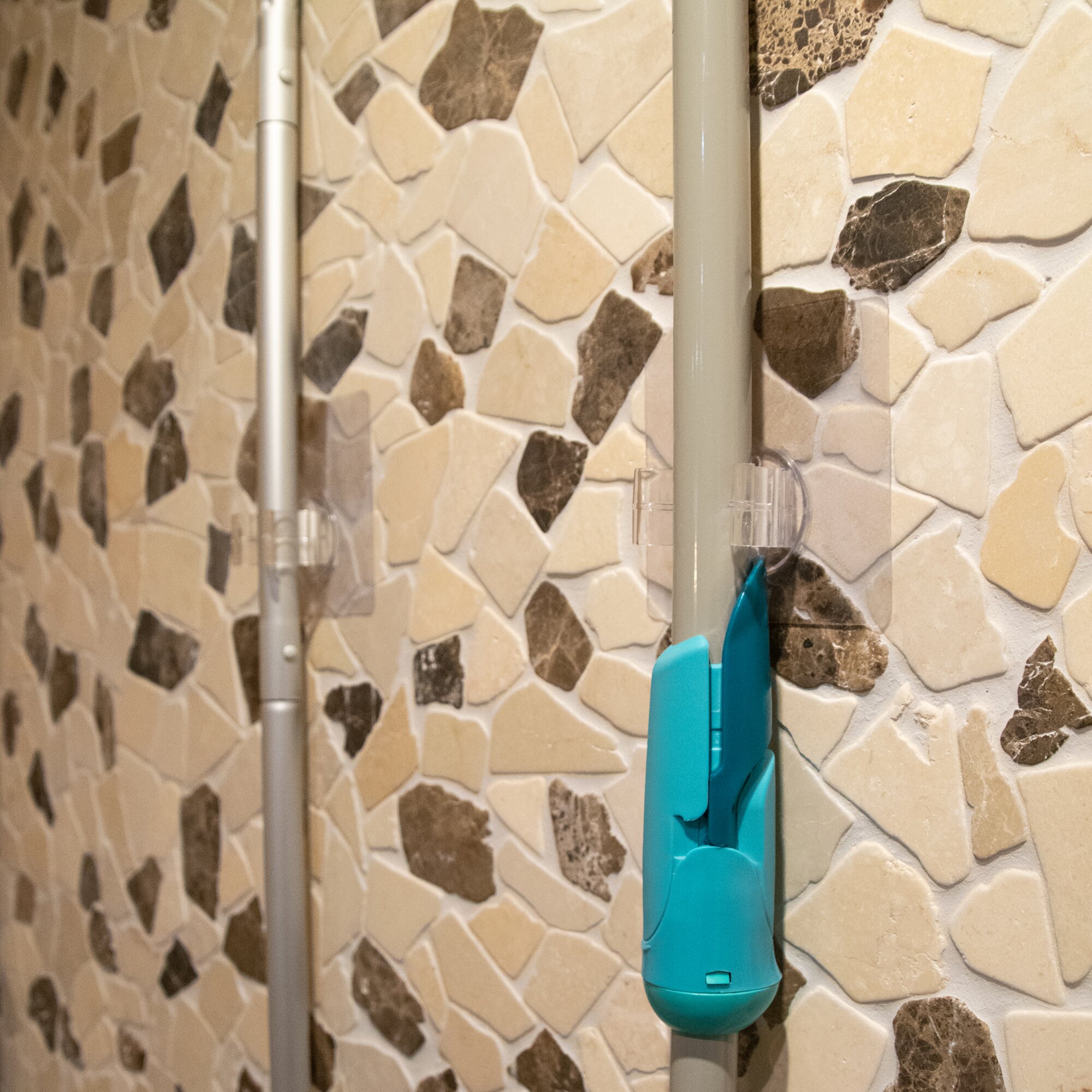 Endlich können Sie Ordnung in Ihre Reinigungs-/Gartenutensilien bringen und Ihrem Besen, Schrubber etc. einen Platz geben. Magischer Haken Klemmhaken, belastbar bis ca. 4,5 kg.