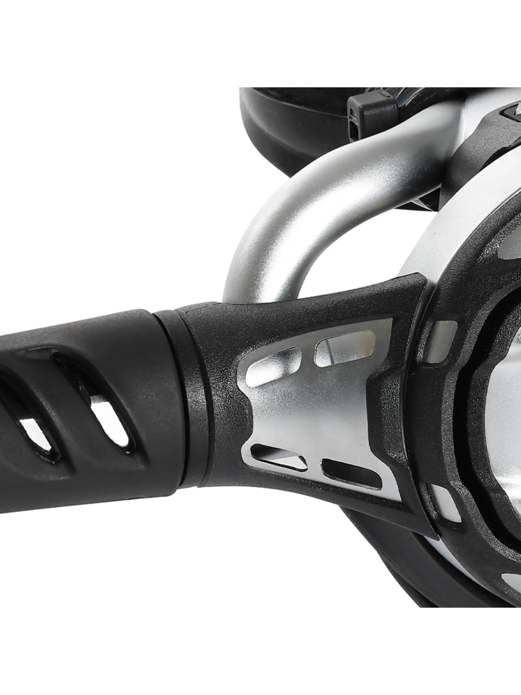 Die Ganzmetall-Zweitstufe ermöglicht Tauchgänge in extrem kalten Gewässern. Der große, schwenkbare Luftduschenknopf ist perfekt für die Verwendung mit dicken Handschuhen oder Trockenhandschuhen.