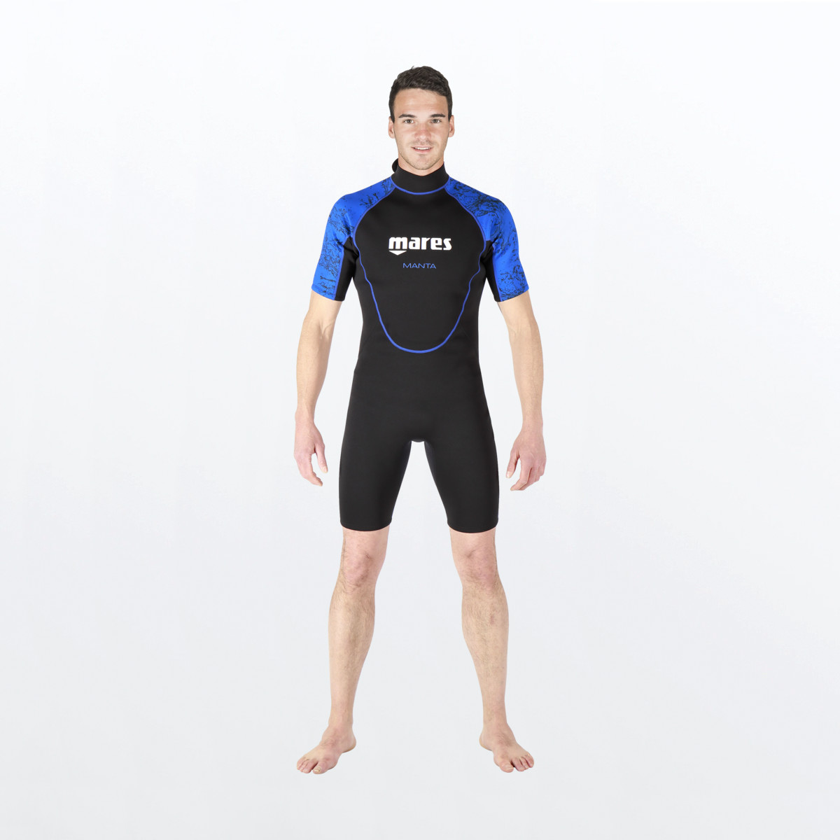 Manta Shorty: kurzärmeliger Schnorchel-Nassanzug und Shorts für Herren. In 2,2 mm Neopren, ideal für Wassersport in warmem Wasser. Speziell geformt, um die Passform zu erhöhen und mit einem praktischen Rückenreißverschluss.