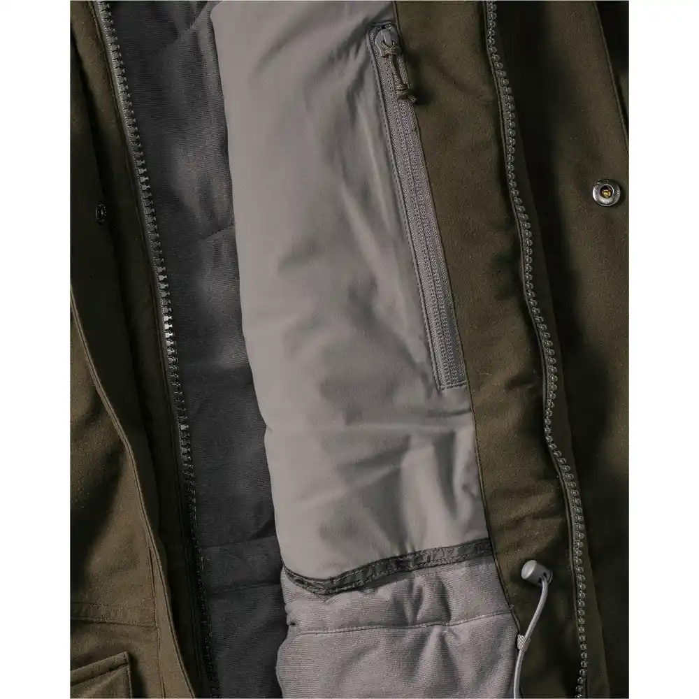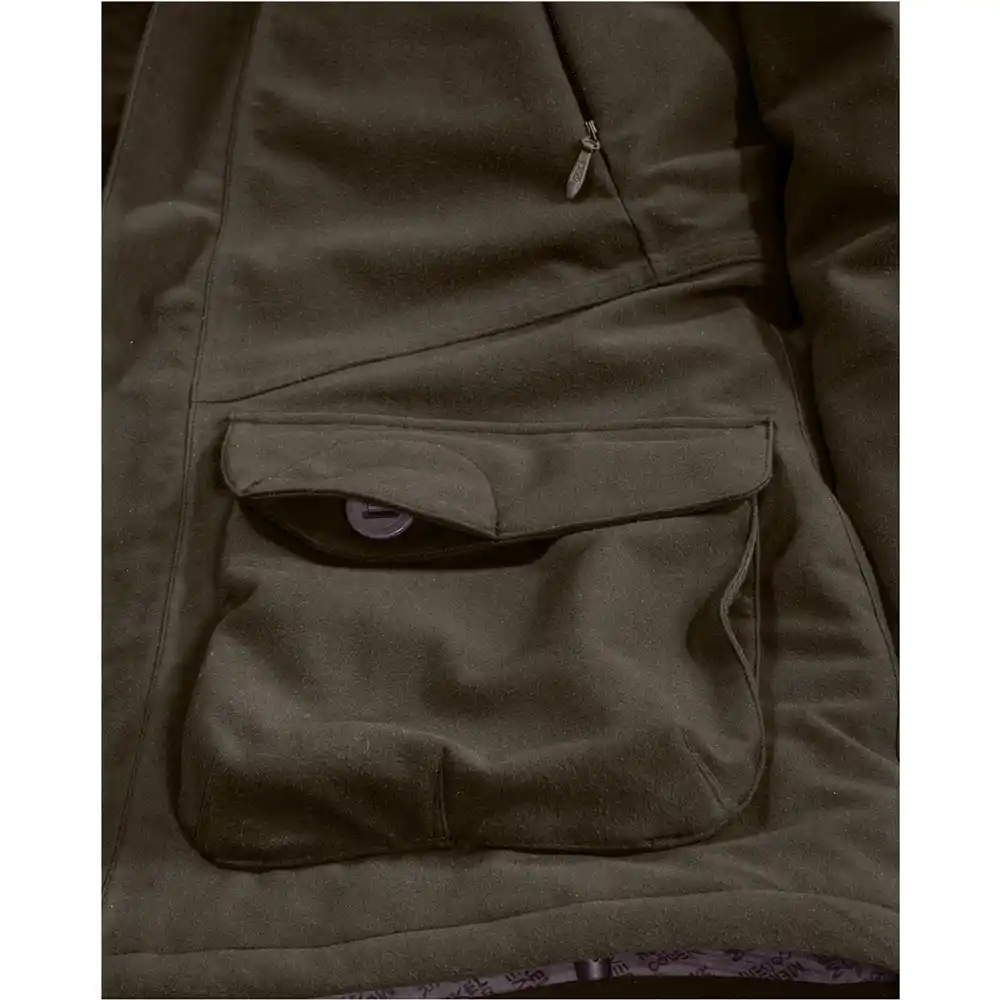 Der Expedition WNTR Parka von MerkelGEAR ist eine „Winterjacke“ der Superlative für die kalte Jahreszeit und nordische Jagdexpeditionen. Erwähnenswert ist das sehr faire Preis-/Leistungsverhältnis dieser 3.5-Lagen-Jacke. Es kommen ausschließlich Markenzutaten zum Einsatz. Vollkommen wind- und wasserdicht dank Marken-Membran von 37.5® (20.000mm / 20.000 gr/qm²) und gefüttert mit der besten Kunstdaune, die der Markt unserer Meinung nach derzeit bietet: 120gr/qm² G-Loft® vom Österreichischen Hersteller Goldeck Textil halten Sie auch im kältesten Winter warm und trocken! Die Sturmfeste, mehrfach verstellbare Kapuze der Jacke gewährt der Jägerin eine 180C°-Sicht und ist dank eines sehr hochwertigen Kunstfells auch in der nicht-jagdlichen Freizeit ein echter Hingucker. Der Schirm der Kapuze ist leicht versteift, um Regen und Schnee zuverlässig vom Gesicht der Trägerin abzuhalten.