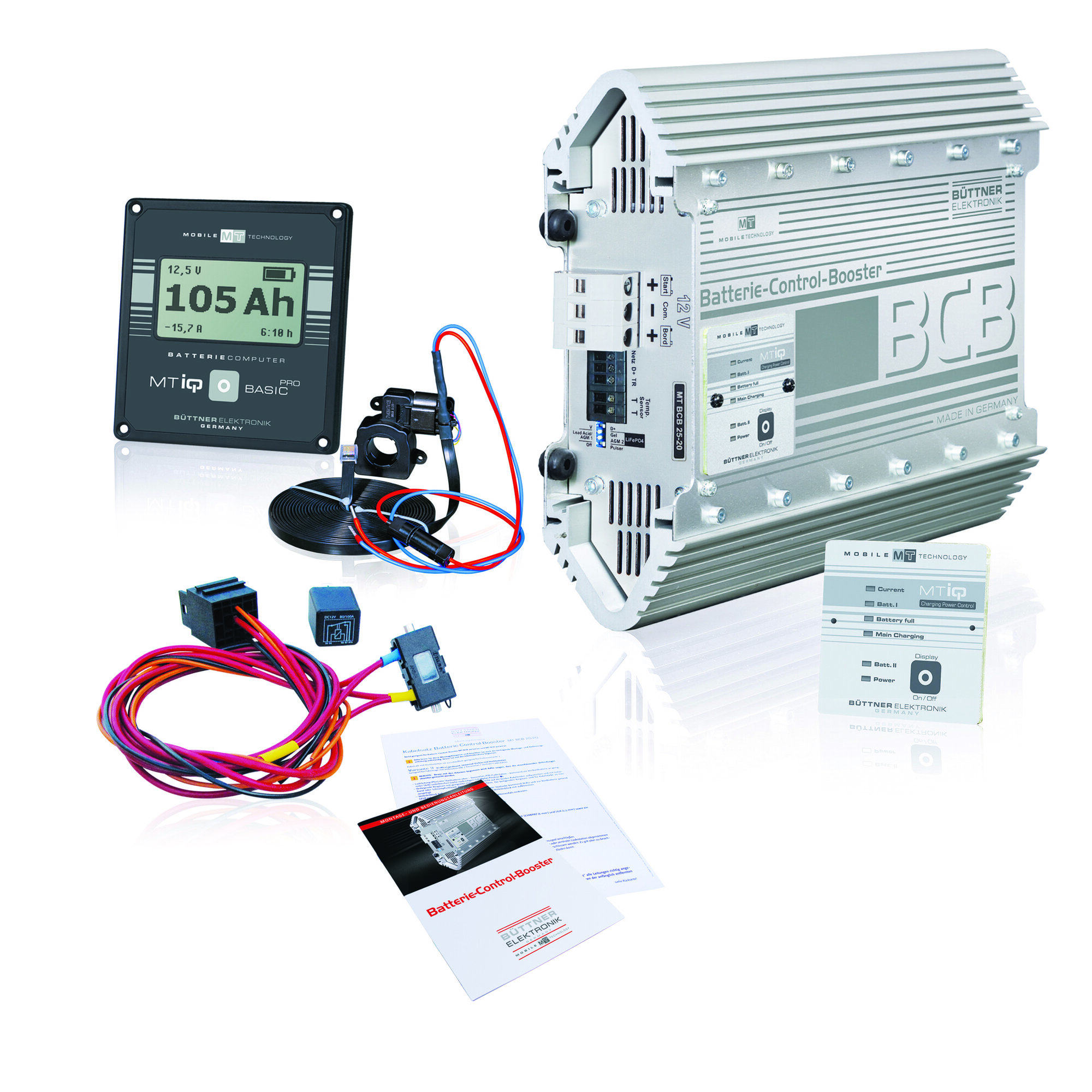 Lieferumfang: MT BCB 25/20; MT iQ Basic; Kabelsatz BCB; Hochlastrelais 12 V 80 A; Kabelsatz iQ Basic; Aufbaugehäuse, Kabelverbinder, Stützpunkt.