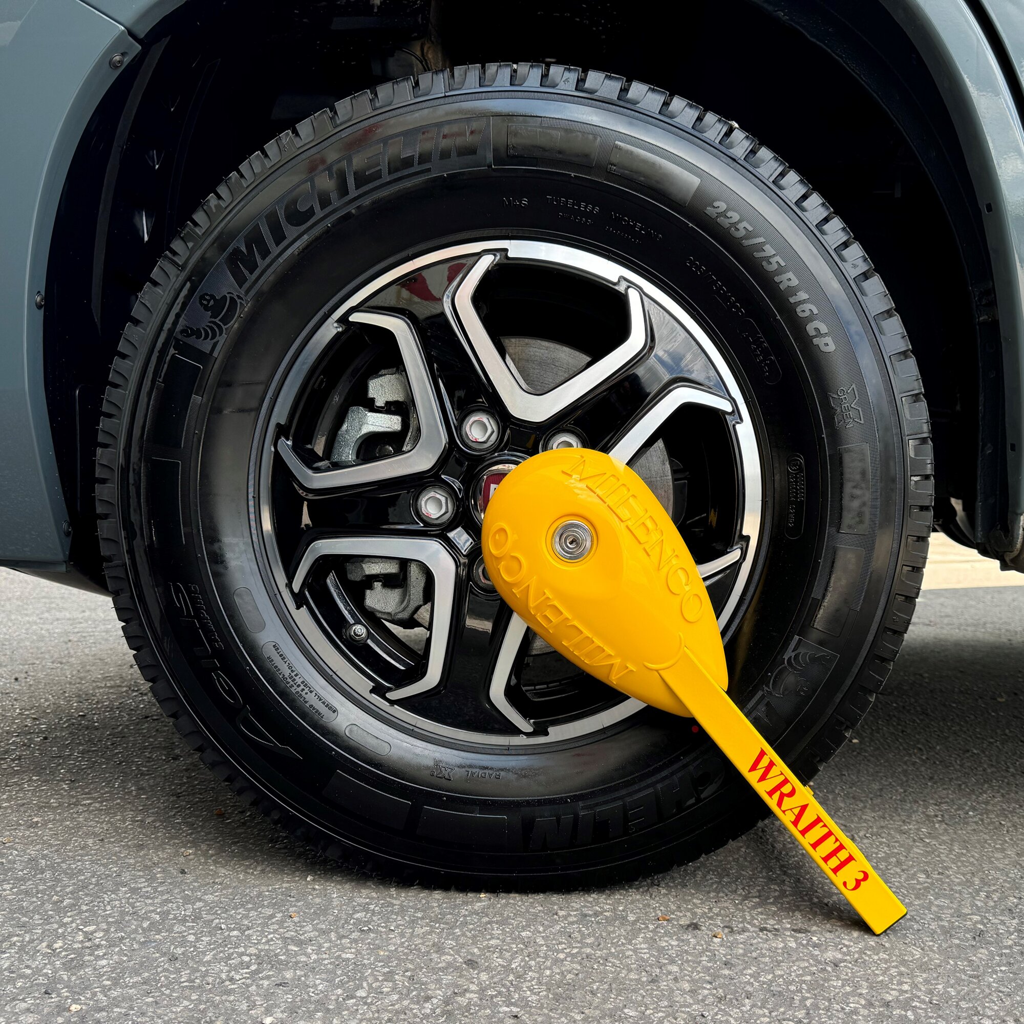 Die Wraith 3 Radkrallen von Milenco bieten maximale Sicherheit für Ihr Wohnmobil oder Ihren Wohnwagen. Sie sind kompakt, leicht und dank der integrierten Stütze einfach anzubringen. Die Wraith 3 wird an einem speziellen Radbolzen befestigt und verhindert durch ihre robuste Stahlkonstruktion die Radrotation, was Diebe abschreckt. Sie ist versicherungsanerkannt, aufbruchsicher und extrem widerstandsfähig gegen Aufbohren, Sägen und weitere Angriffe.