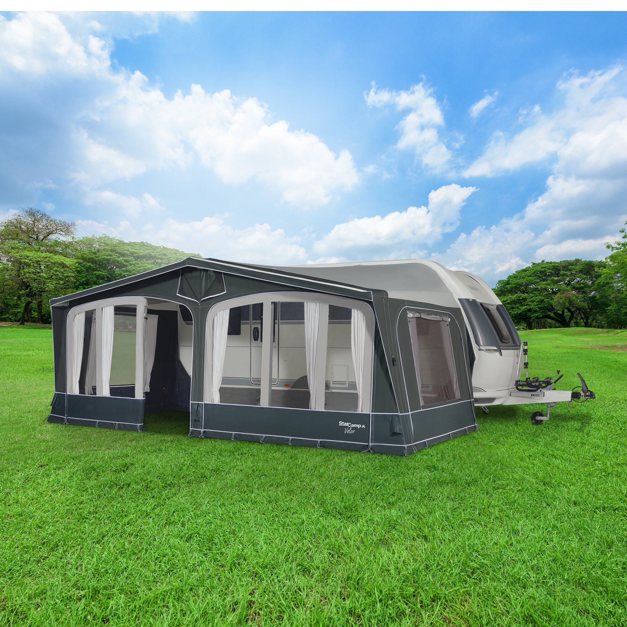 Das Reisevorzelt Valor Air von Doréma setzt neue Maßstäbe in puncto Preis-Leistungs-Verhältnis und Qualität. Gefertigt in Europa, überzeugt es durch den Einsatz hochwertiger Materialien wie dem UV-stabilen Airtex im Dach und TenCate in den Front- und Seitenwänden. Diese Kombination sorgt für besonders hohe Strapazierfähigkeit und Witterungsbeständigkeit. Qualitätsreißverschlüsse von Kroko und Opti gewährleisten eine zuverlässige Nutzung. Abnehmbare Elemente ermöglichen eine flexible Nutzung als Veranda oder Sonnendach. Großflächige Fensterfronten und Moskito-/Gaze-Einsätze in den Seiten bieten zudem eine angenehme Belüftung. Auch in den Größen für Tandemachser verfügbar.