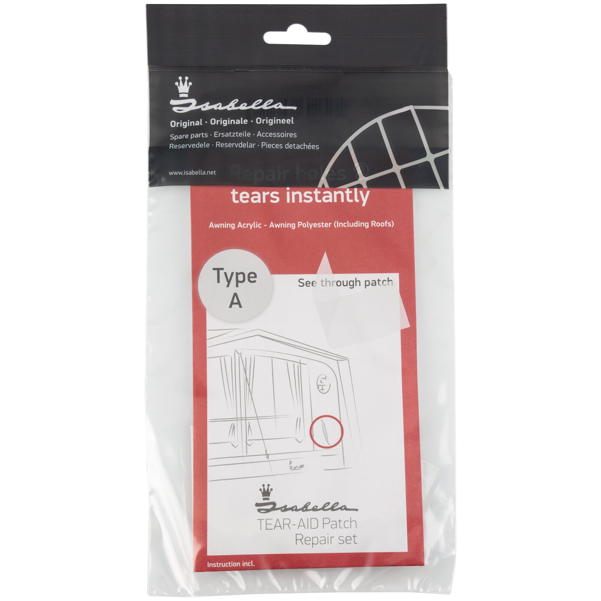 Selbstklebendes Reparaturset zum Abdichten von Löchern und Rissen in Vorzelten. Die drei Flicken (78 x 150 mm, 36 x 36 mm, 23 x 23 mm) sind transparent und beliebig schneidbar. Inkl. Verstärkungsschnur und Reinigungstüchern.