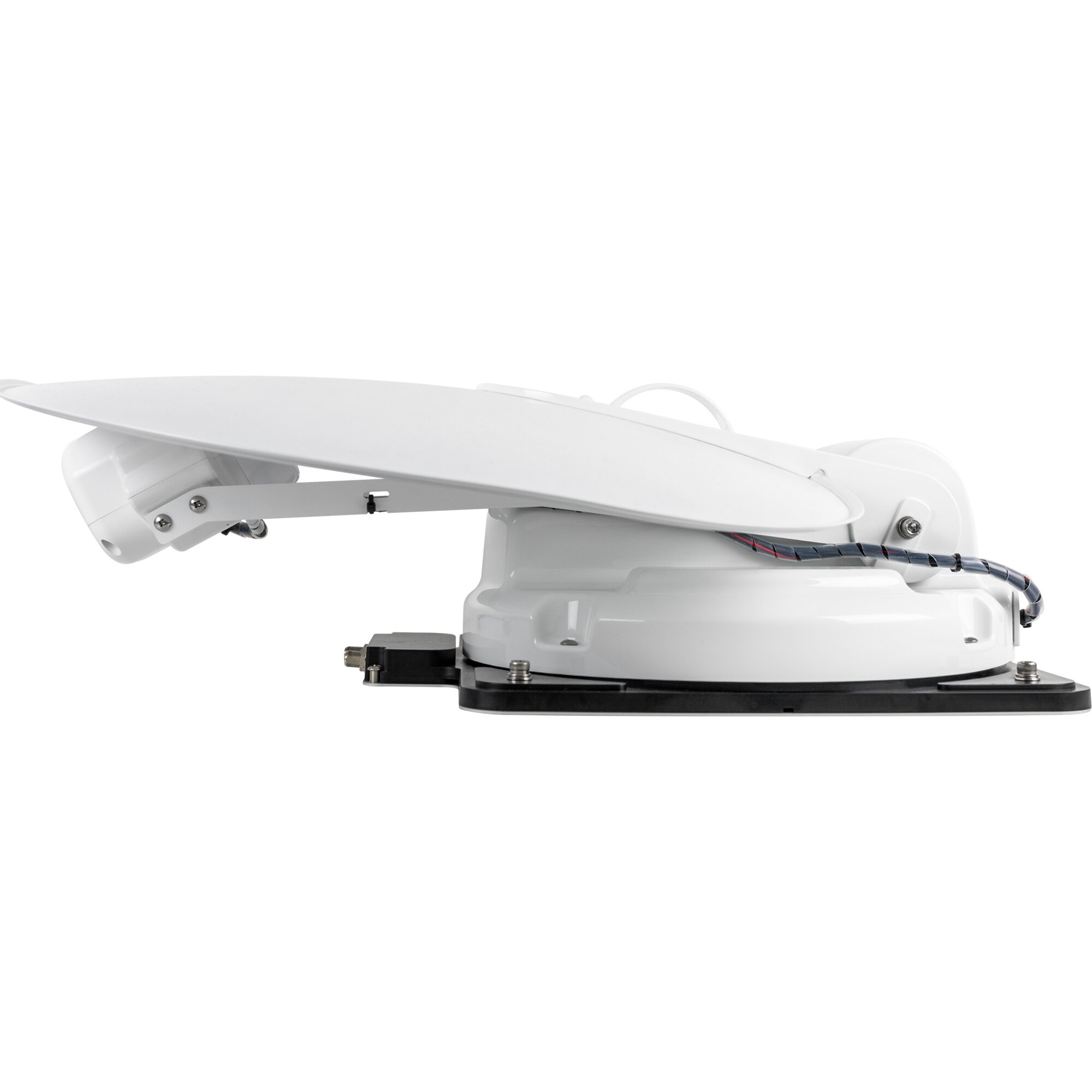 Spiegelgröße 55 cm, Twin-LNB, GPS-Empfänger, Frequenzbereich 10,7 – 12,75 GHz, Suchwinkel 360°, Betriebstemperatur -25 °C – +70 °C, Maße B 56 x H 16,5 x T 54,6 cm, Gewicht 5,1 kg