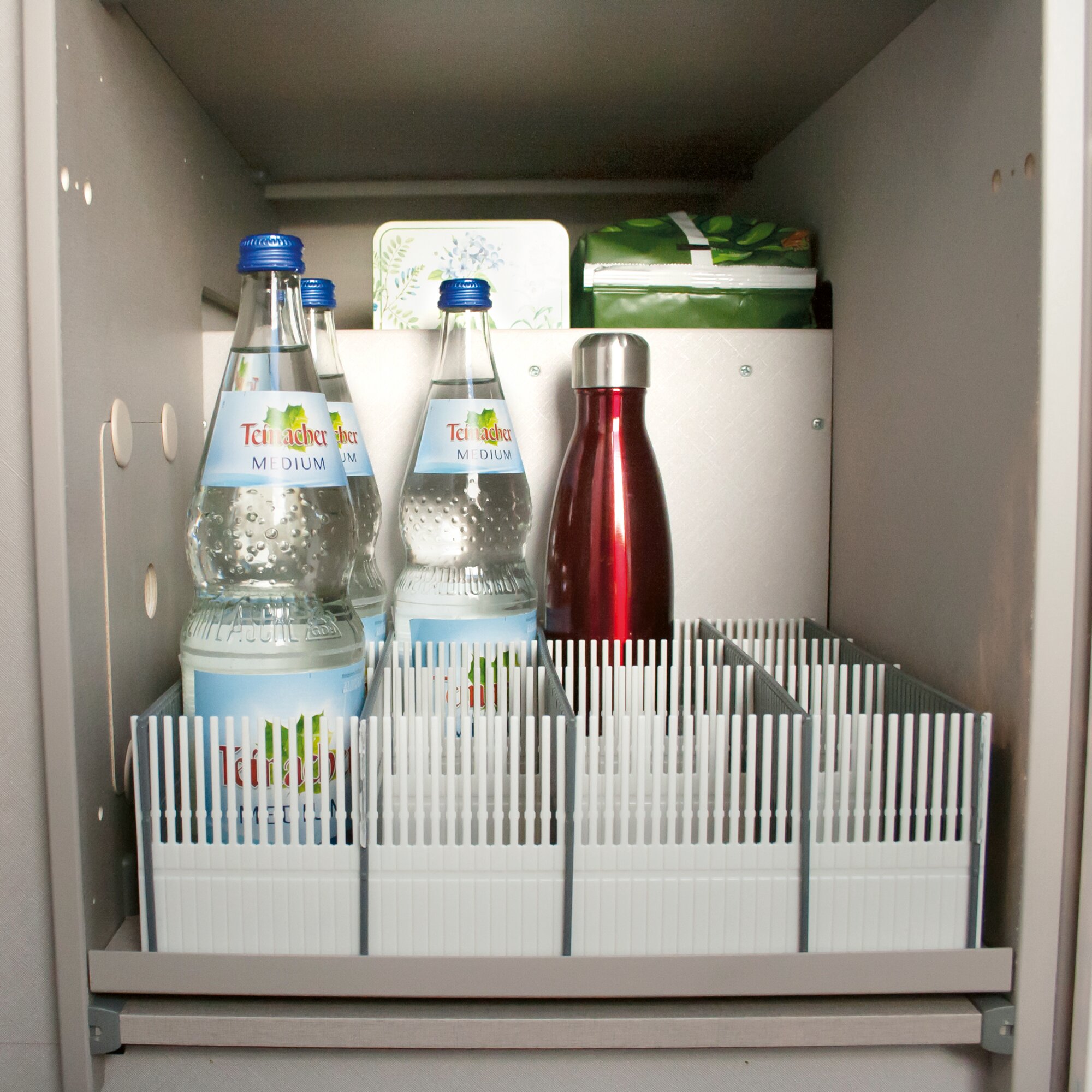 Der Staueinsatz mit den Stauleisten bietet für jede Fachgröße eine platzsparende Lösung – ob im Reisemobil, Wohnwagen, Boot oder bei Autoreisen! Das Stecksystem besteht aus 8 Stauleisten, die einen variablen Facheinsatz ergeben. Die Längs- und Breitstege aus flexiblem Kunststoff bieten optimalen Trennschutz für verschiedene Artikel und stabilisieren dadurch ihre Gegenstände bruchsicher und rutschfest. An der oberen Längsseite einer Stauleiste befinden sich viele Zinken, die durch einfaches Zusammenstecken eine stabile und feste Verbindung ergeben. Mit der engen Rasterung durch die Zinken wird eine flexible Verstellbarkeit auf fast jeden Abstand ermöglicht. Die Stauleisten sind im Abstand von 3 mm perforiert. Dadurch können Sie mit einem Cuttermesser genau an der gewünschten Stelle der Stauleisten ansetzen und anschneiden um es danach abzuknipsen. Set: 8-teilig.
