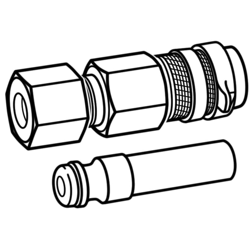 Zum schnellen Verbinden von Rohrleitungen mit Schlauchleitungen. Rohrverschraubung = 8 mm.