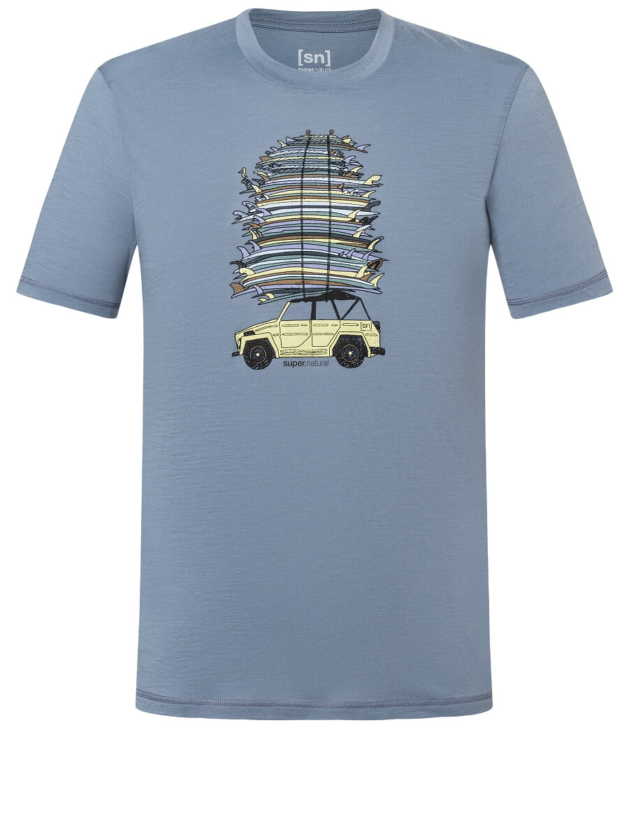 Das SURF TRIP TEE von super.natural bringt den perfekten Spirit für alle Surfliebhaber mit optimalen Komfort von ADVANCED WOOL 140. Die natürliche Temperaturregulierung und die angenehme Weichheit machen es ideal für für Reisen oder Ausflüge zum Meer.