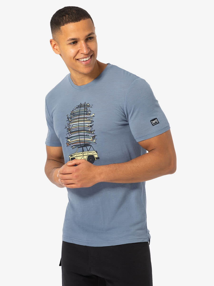 - Kurzarm Merino T Shirt mit Surf Print