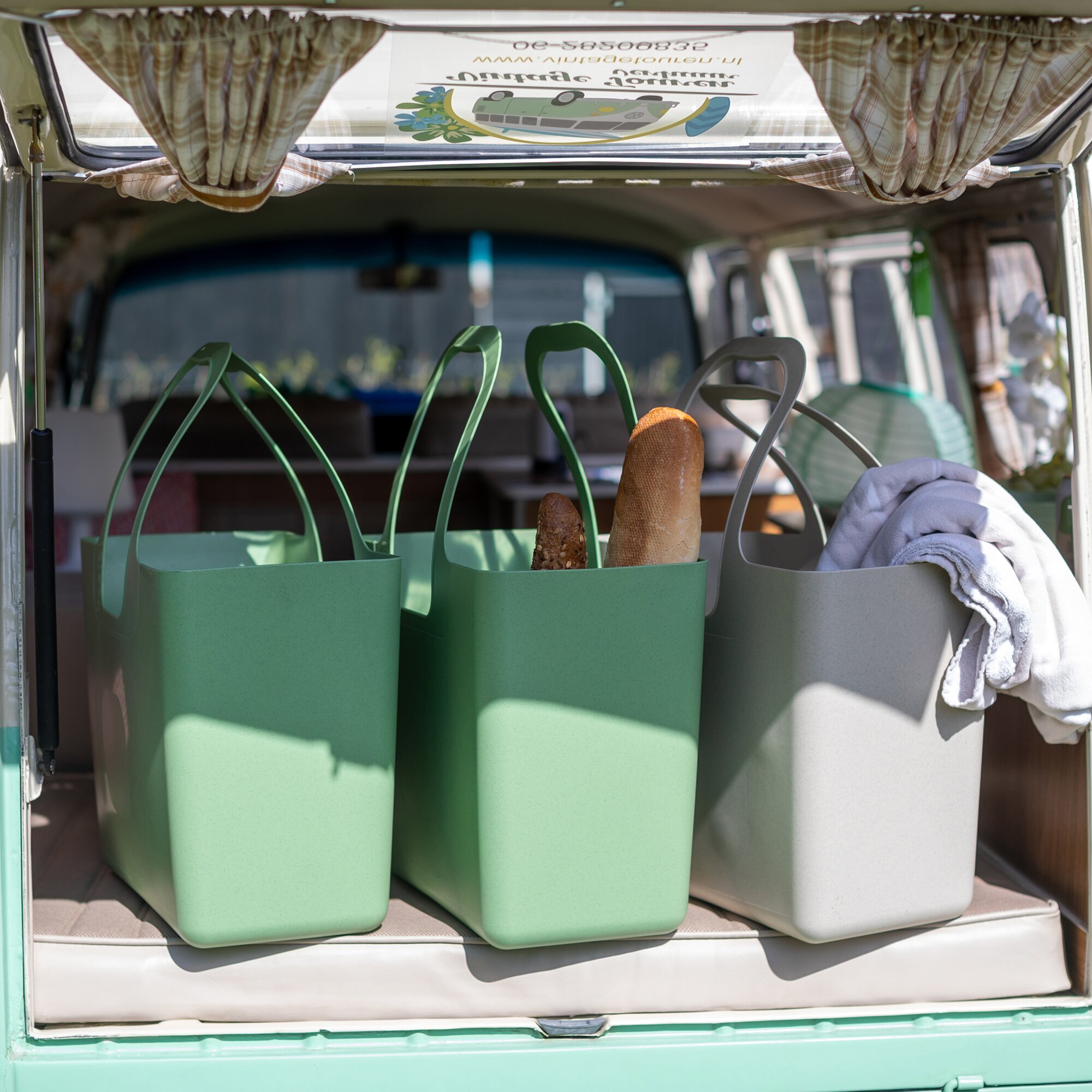 Die geräumige Einkaufstasche passt dank ihres kompakten Formats hinter jeden Autositz und in die meisten Schließfächer. Sie ist stabil, leicht zu reinigen und perfekt für den Wochenendeinkauf.