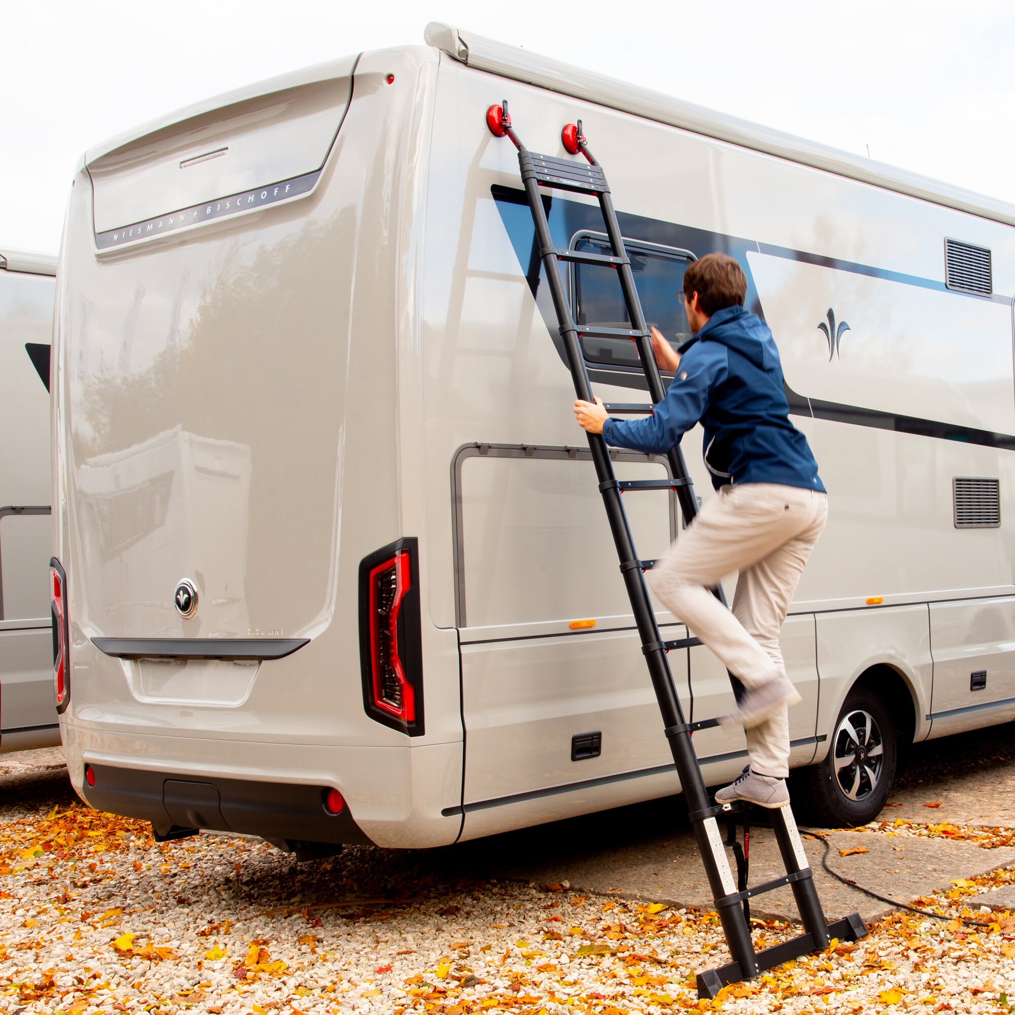 Ob am Wohnmobil, an der Hauswand oder an empfindlichen Glasflächen – diese durchdachte Leiter passt sich unterschiedlichsten Anlegeflächen an. Das weiche Gummi schützt lackierte und glatte Untergründe, während spezielle Filzpads selbst empfindliche Oberflächen wie Rauputz oder Tapeten schonen. Dank des innovativen Saugsystems liegt die Leiter besonders stabil an. Außerdem ist sie in Sekunden einsatzbereit oder zurückgebaut – ganz ohne Werkzeug.