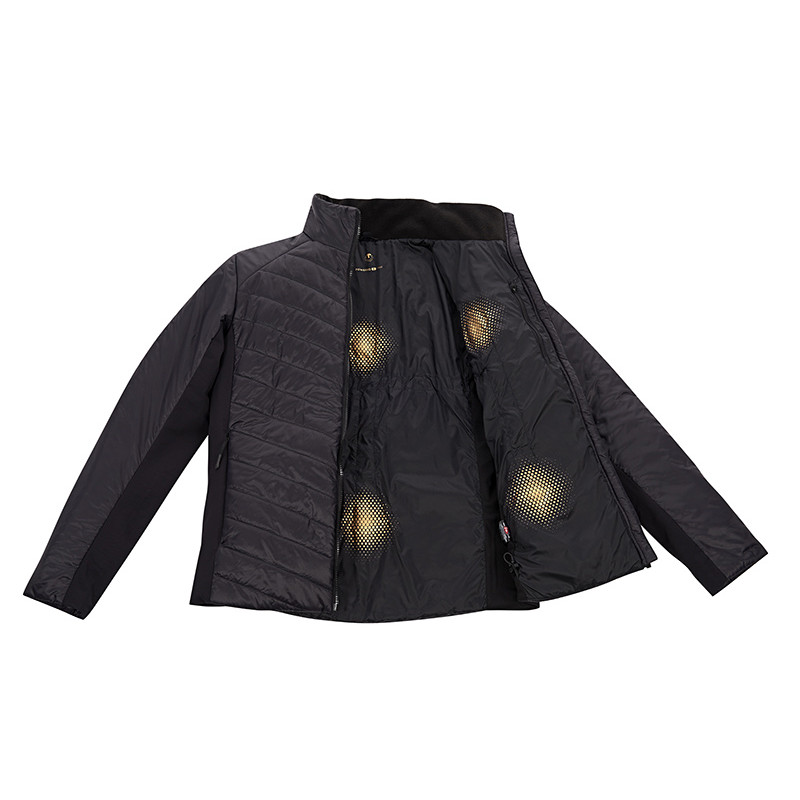 Die Jacke enthält 6 Heizelemente, die an Rücken und Bauch aufgeteilt sind. Die auf der Vorderseite eingesetzte Windschutzmembran der Heizjacke wird Sie warm halten und vor Kälte schützen. Das technische Primaloft-Futter bietet optimale Wärmeisolierung.