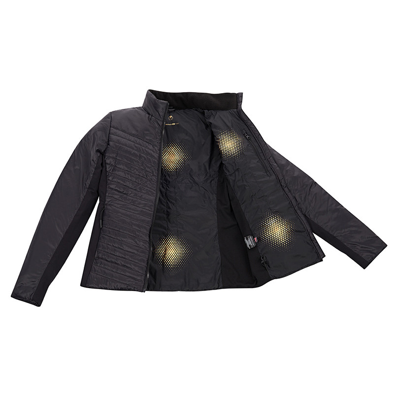 Die warme Hightech-Jacke von Therm-ic. Die ideale Wintersportjacke selbst für die Kälteempfindlichsten unter Ihnen. Tragen Sie sie den ganzen Tag lang unter Ihrer Jacke und genießen Sie die Wärme, die dank der 6 Heizelemente gleichmäßig zwischen Rücken und Oberkörper verteilt wird. Die Wärme regeln Sie bequem mit dem Smartphone und der Therm-ic-App.