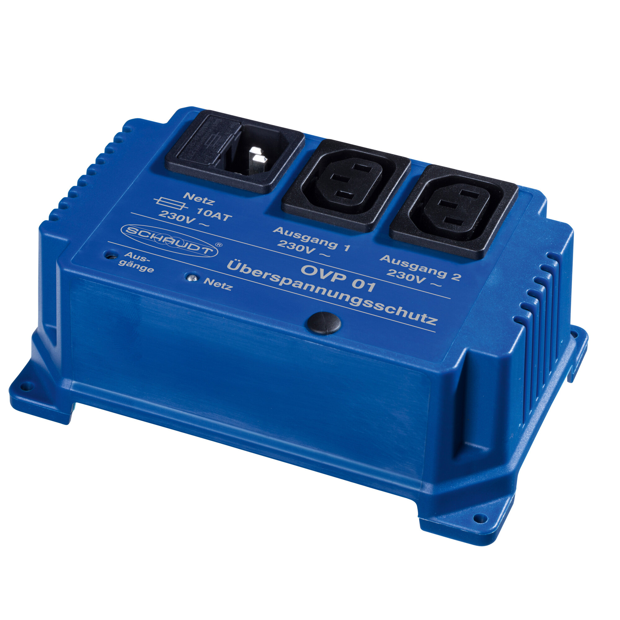 Das OVP 01 Überspannungsschutzgerät dient dem Schutz von 230-V-Geräten bei Über- und Unterspannungen. Es wird zwischen den Netzanschluss und die zu schützenden Schaudt-Geräte geschaltet. Bei einer auftretenden Über- und Unterspannung trennt das Gerät die angeschlossenen Geräte innerhalb weniger Millisekunden vom 230-V-Netz. Die Geräte bleiben so lange abgeschaltet, bis die Netzspannung wieder normale Werte erreicht hat. Lieferung inkl. Kaltgeräteverlängerung.