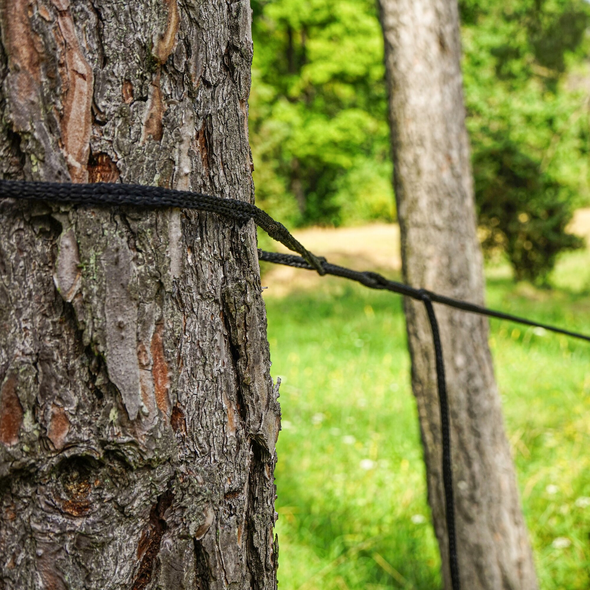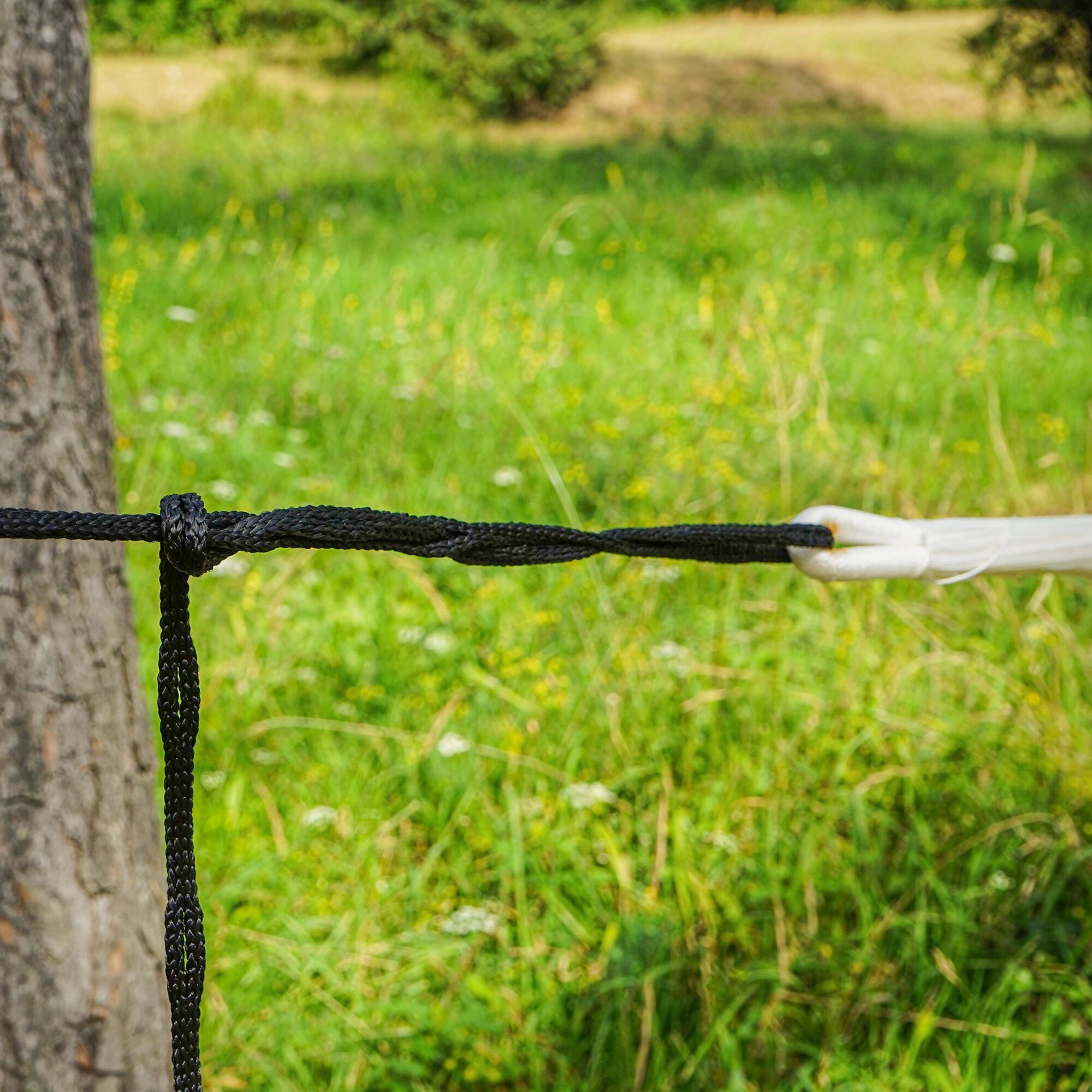 Vielfältig einsetzbares Universalseil. Die durch eine spezielle Flechtmethode entwickelten Lücken im Seil ermöglichen alles vom Sichern von Ladung bis zum Aufhängen einer Hängematte – in nur 3 Schritten und ohne lästige Knoten!