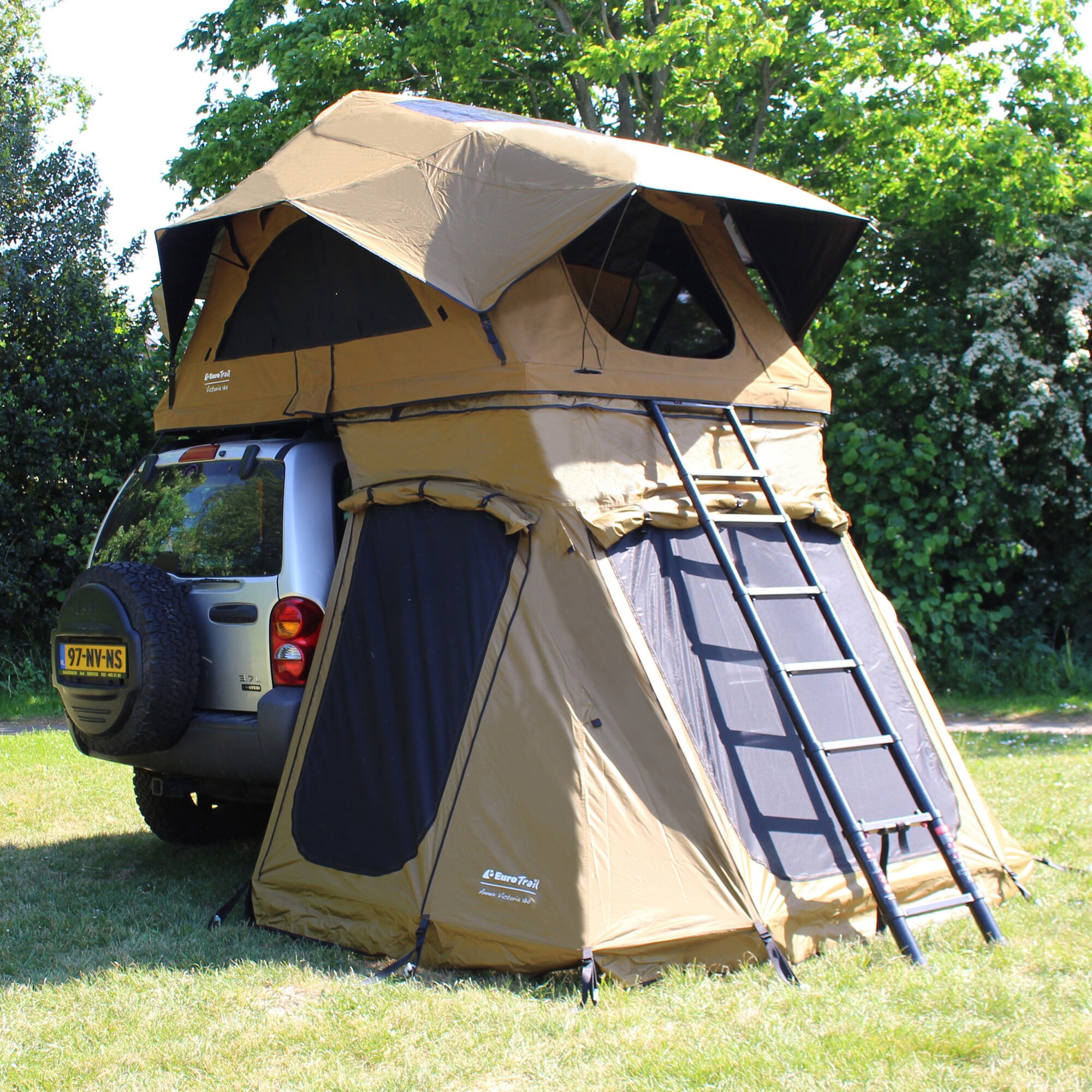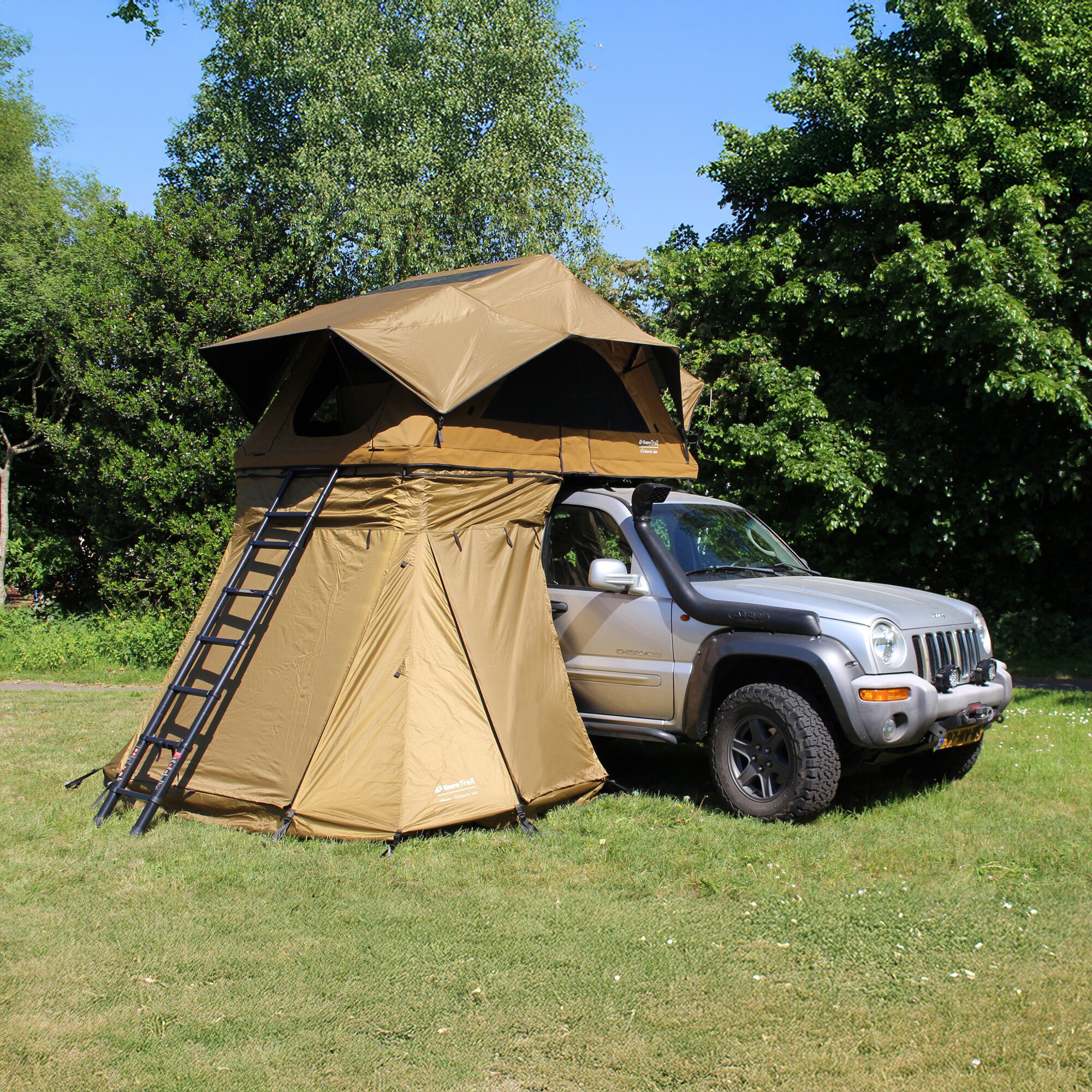 Das Unterzelt für das Softtop-Dachzelt Victoria schafft zusätzlichen Stauraum und sorgt für mehr Privatsphäre unter dem Dachzelt. Mit Moskitogaze für Belüftung und Insektenschutz. Die Befestigung erfolgt einfach, indem das Unterzelt in den untenliegenden Keder am Dachzelt eingezogen wird.
