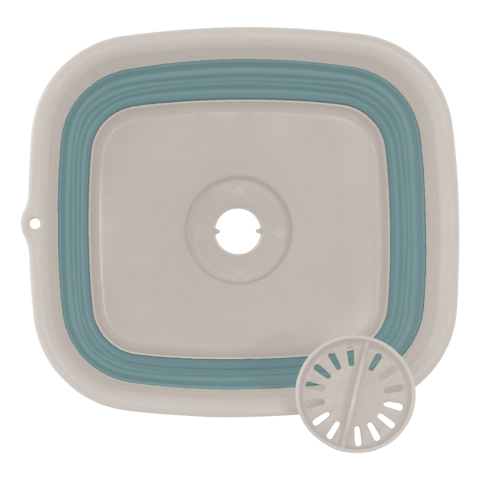 Ablauf mit abnehmbarem Stopfen. Zusammenklappbar. Leicht zu öffnen und zu falten. Bruchfest. BPA-frei.