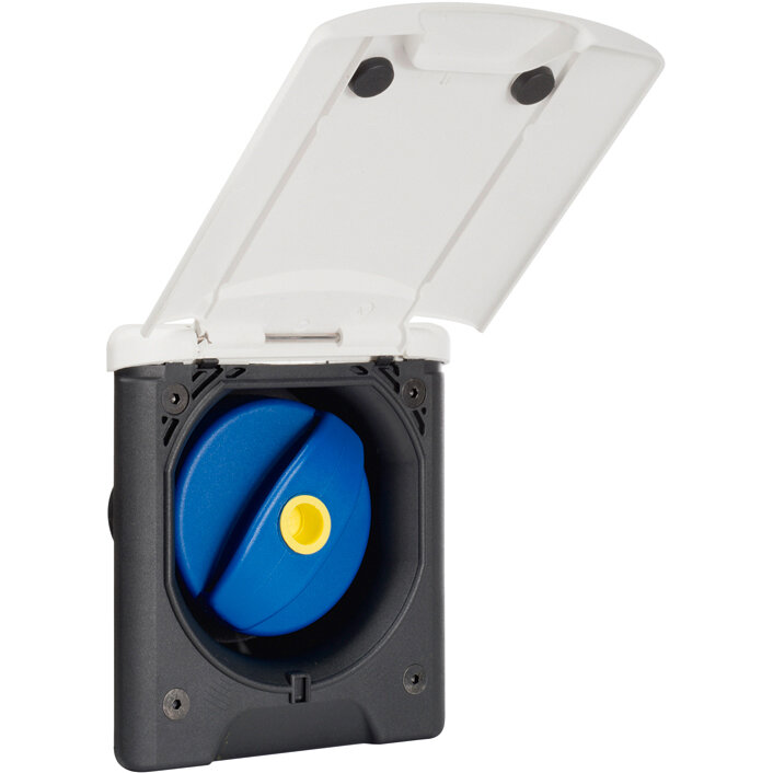 Mit Klappdeckel und Magnetverschluss, ohne Tankdeckelverschluss. Schlauchanschluss ø 40 mm.
