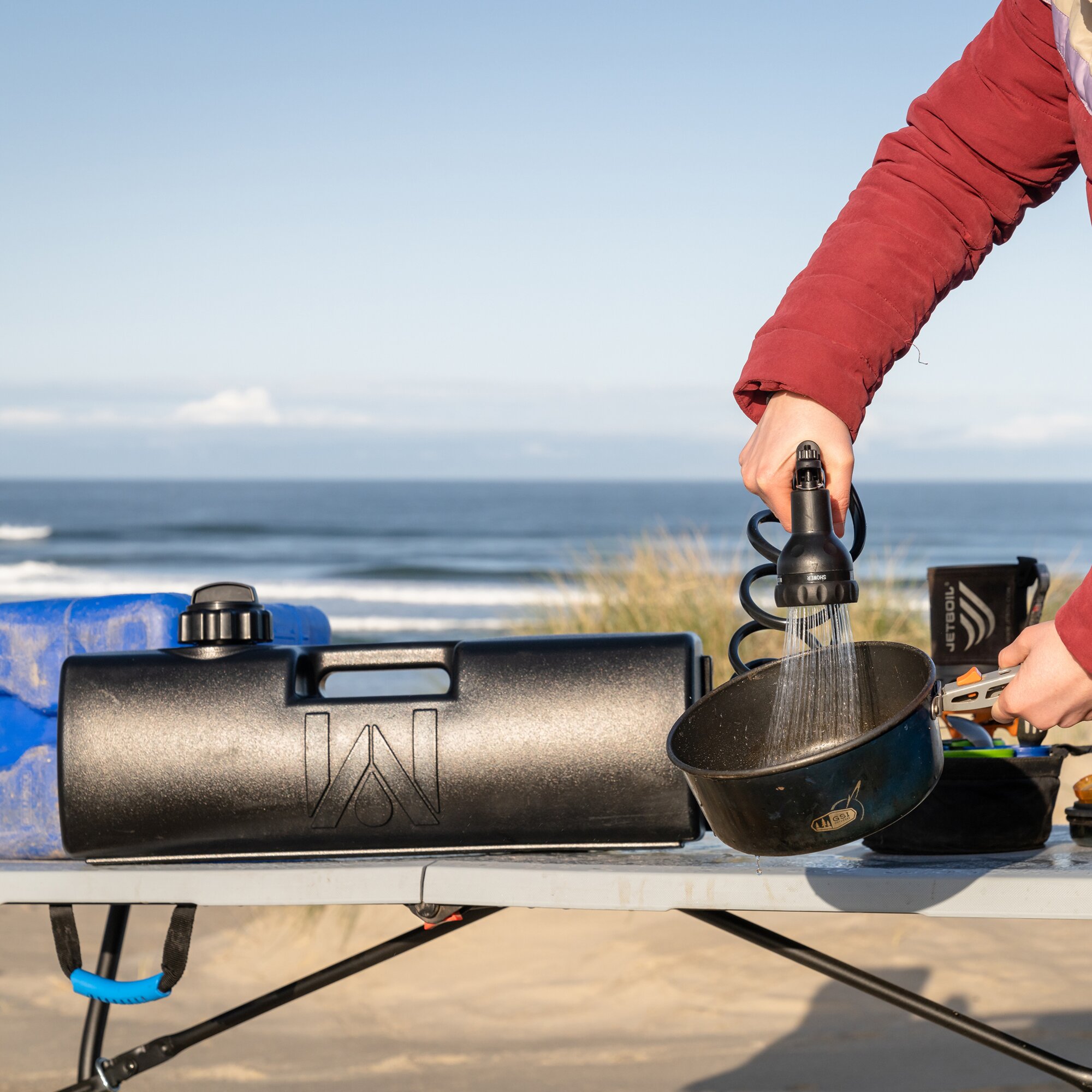 Das freihändige Dusch- und Spülset ist mit allen WaterPORT Tanks kompatibel. Es ermöglicht das Duschen, Abspülen und Reinigen auch unterwegs. Mit flexiblem, 45 cm langem Schlauch, Saughalterung, Düse mit Bewegungssensor mit fünf Einstellungen und Akku. Kompakt verstaut in einem Tragekoffer. Inklusive Mini-USB-Ladekabel zum Aufladen des Akkus, Schnellverbinder, Reinigungstüchern für die Saughalterung und zweitem, klassischem Duschkopf. Ideal für Familienausflüge, Bootstouren und Campingabenteuer.Technische InformationenBruttogewicht: 1,5 kgFarbe: SchwarzMaterial: EdelstahlNettogewicht: 1,5 kgPackmass Grösstes Mass: 32 cmPackmass Kleinstes Mass: 13 cmPackmass Mittleres Mass: 25 cmUrsprungsland: CN