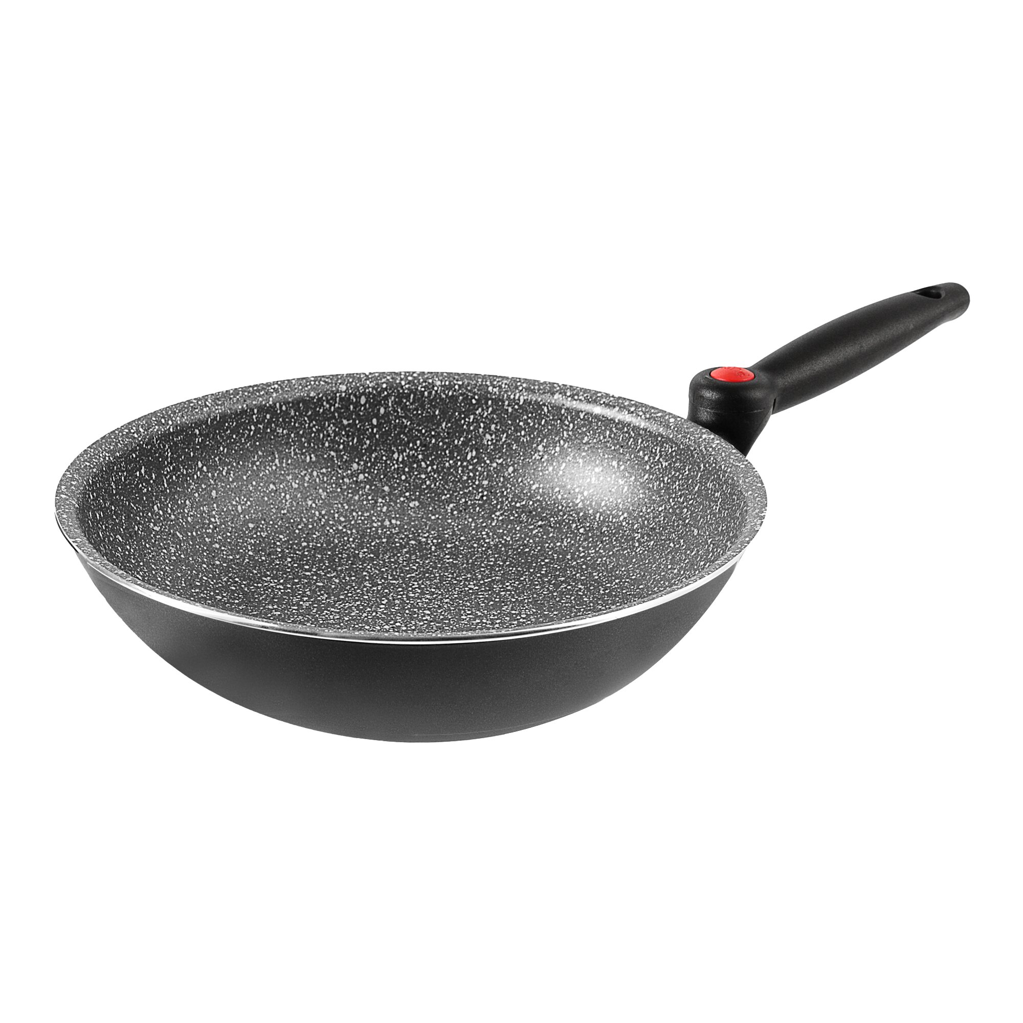 Wok-Pfanne ø 28 cm aus Aluminium mit Antihaftbeschichtung. Dank patentiertem, klappbarem Griff platzsparend verstaubar.