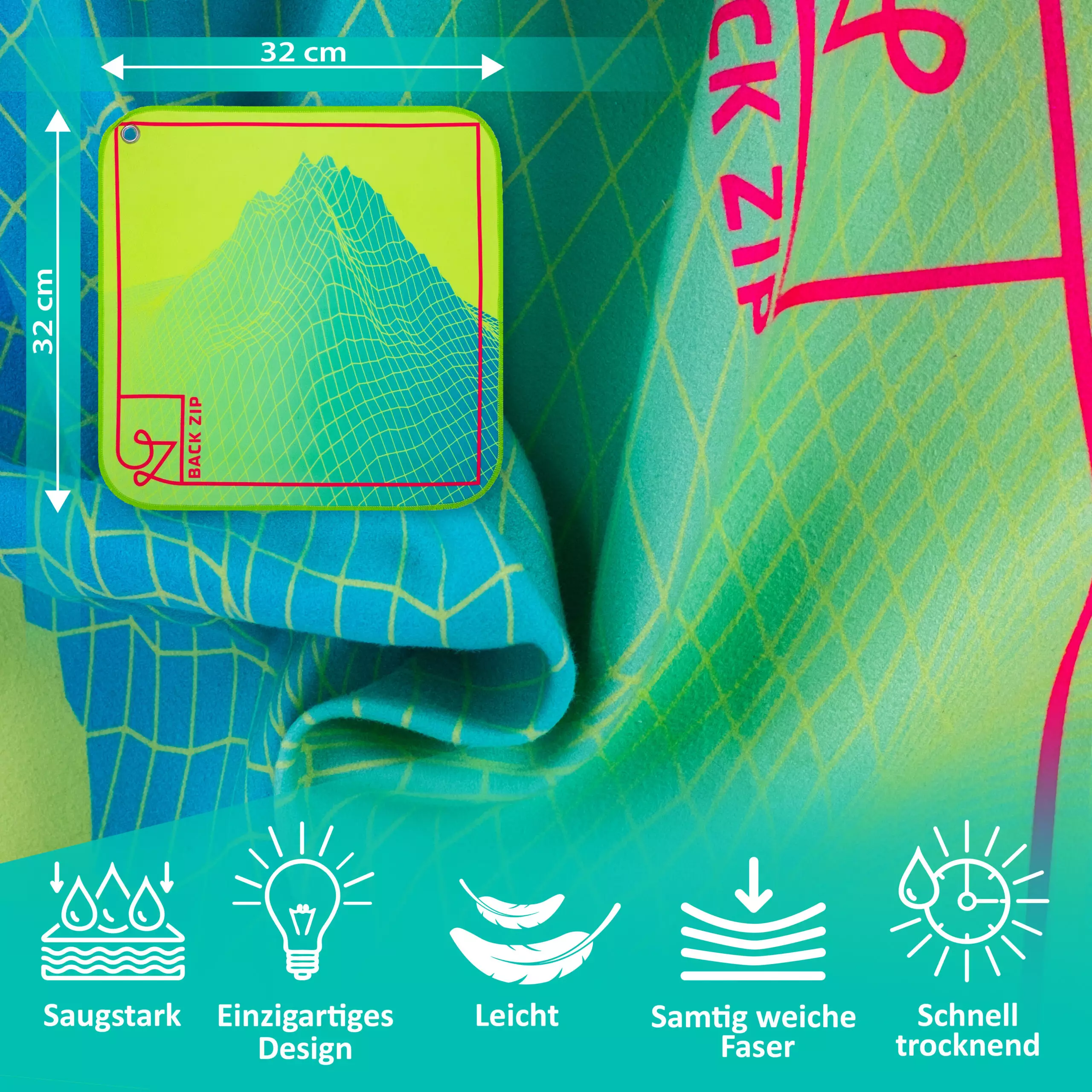 - PRAKTISCH VERSTAUT: Der Zip Karabiner kann an jedem Rucksack befestigt werden und das Mini Handtuch aus Mikrofaser ist jederzeit griffbereit. Das Sporthandtuch kann rasch an der Luft trocknen und du hast die Hände wieder frei.